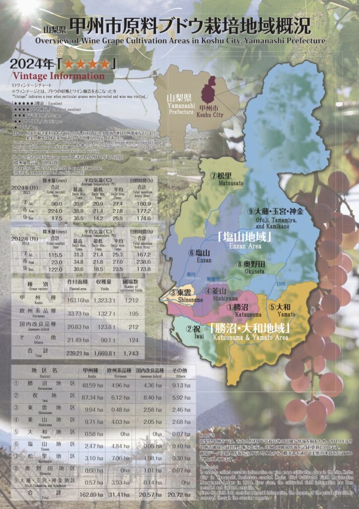 圃場、書類、官能、ラベル表示の4審査をパスしたワインのみ許される甲州市認証の称号です。